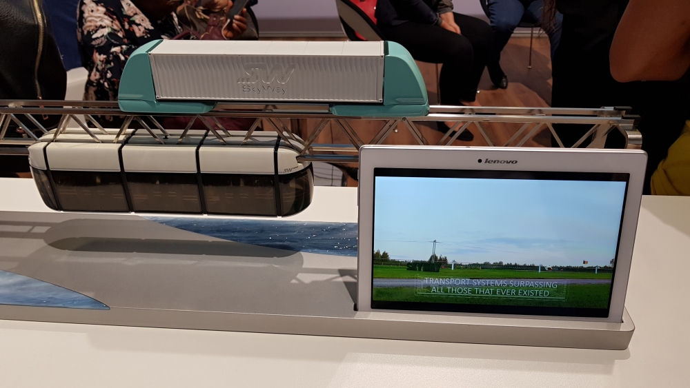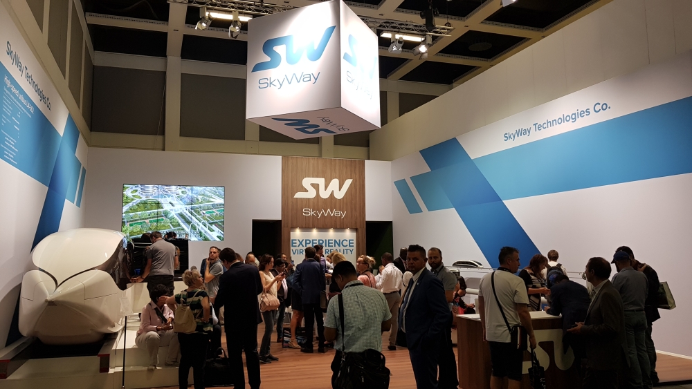 SkyWay mal na výstave jeden z najvýraznejších stánkov. Zvýšenú pozornosť ohľadom ich stánku vyvolala účasť kľúčových pracovníkov spoločnosti, s ktorými sa dalo porozprávať a dozvedieť sa informácie z prvej ruky. Vysokorýchlostnú dopravu SkyWay osobne predstavil generálny konštruktér z. a. s. Strunové technológie a autor koncepcie strunovej dopravy Anatolij Junický.