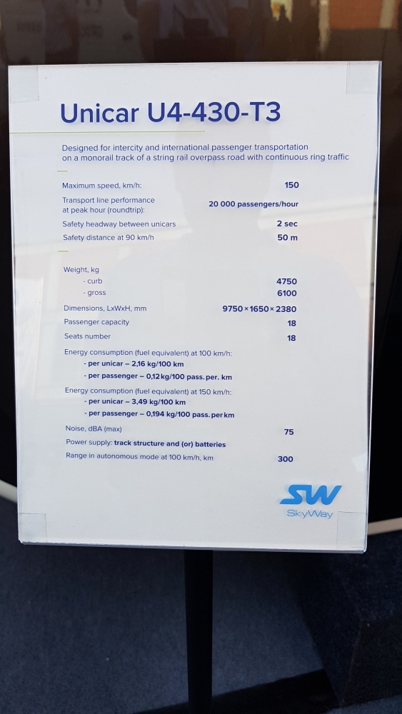 V porovnaní s pred 2 rokmi, tentoraz už strunová doprava SkyWay nebola zaradená medzi futurustickými dopravami, ale normálne medzi plnohodnotnými koľajovými dopravami. Dokonca mala 1 stánok vonku pred halou č. 4, kde bol vystavený 18-miestny junikar pre mestskú dopravu, a taktiež 1 stánok vo vnútri na mieste 4.2. Vnútorný stánok sa rozprestieral na oveľa rozsiahlejšej ploche ako v roku 2016. Najväčšiu pozornosť pútal jednoznačne vysokorýchlostný junibus, samozrejme funkčný a v plnohodnotnej verzii. Dizajnom viacerým ľuďom pripomínal vesmírnu raketu a zožal nesmierny úspech. Naviac tam boli vystavené aj ďalšie modely - vzorky v rôznych mierkach, takisto aj vzorky koľajníc, motokoleso v skutočnej veľkosti a ďalšie zaujímavosti (napr. okuliare pre virtuálnu realitu).