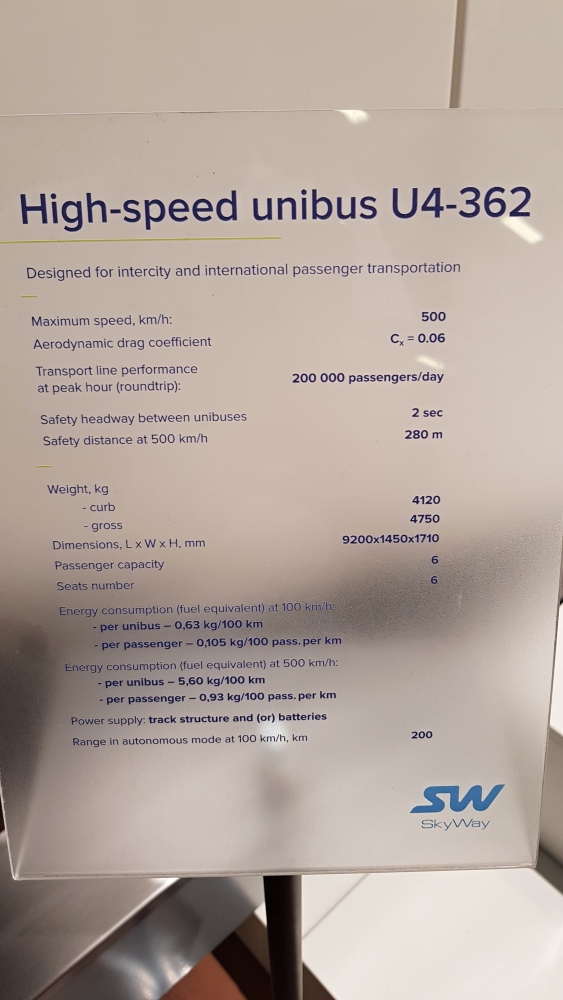 V období od 18. do 21. septembra sa konala medzinárodná dopravná výstava InnoTrans 2018. Na nej sa prvýkrát verejnosti predstavil vysokorýchlostný unibus - jeden z dopravných modulov strunovej dopravy SkyWay.